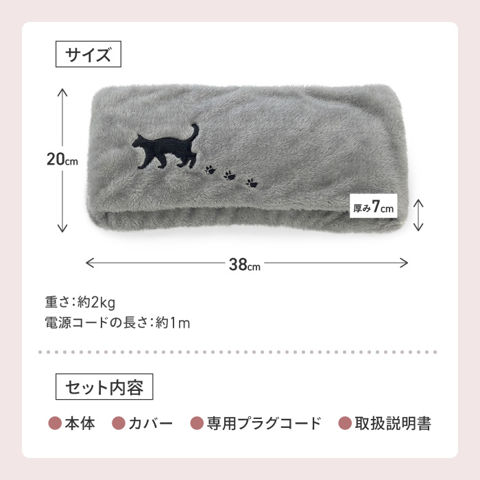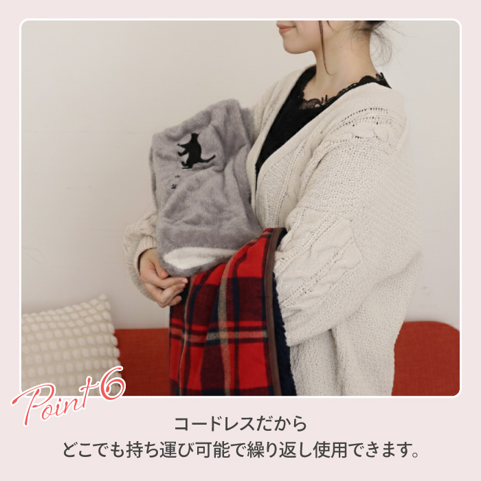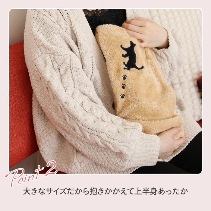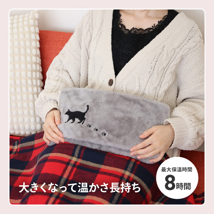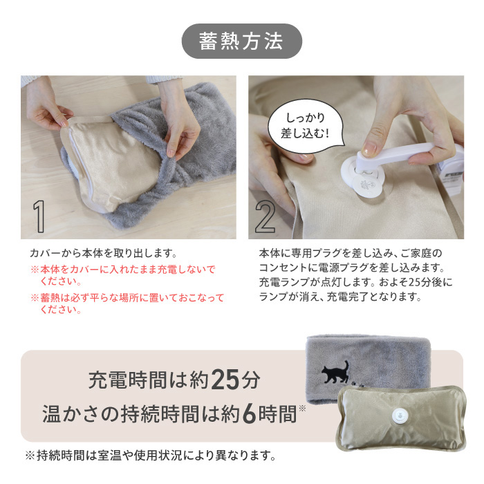●面倒なお湯の入替えは不要!専用コードを挿すだけ。約25分で蓄熱完了。最長8時間温かさが持続します。 ●大きなサイズだから抱きかかえて上半身あったか ●タテヨコで使い方いろいろ!両手や足先を入れて温められます。 ●ふわふわした毛並みのカバーとかわいい猫のアップリケ。 ●コードレスだからどこでも持ち運び可能で繰り返し使用できます。 ●PSEマーク認証済商品 |